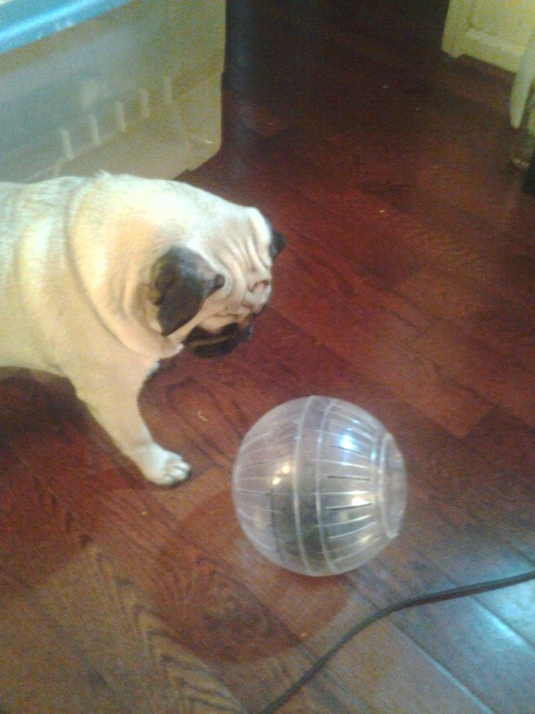 When Yertle gets restless, I put him in his hamster ball and let him roam around the living room. His new favorite thing is to purposefully roll into the dogs (we have 3: a cavachon, shih tzu, and pug) when the dogs are sleeping on the floor. The pug loves the turtle sooo much and he watches Yertz when he rolls around.