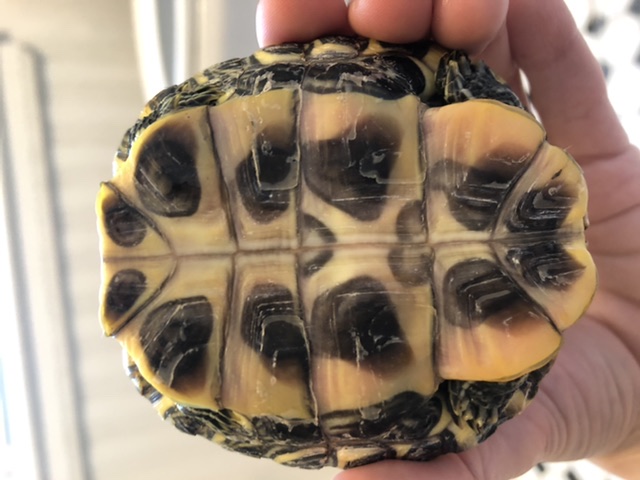 Hi! New to the group. I just took in a red eared slider. His shell is less than ideal, but I’m not sure what went wrong. His shell is dark and very ridged, sort of wavy. He is about a year and a half old. According to his owners he’s always had heat/uvb lighting and was fed pellets. His tanks water was crystal clear but did have a pretty significant amount of algae (the fuzzy kind) Maybe he was kept on the baby pellets for too long? He is so active, loves basking, and has a healthy appetite. Any theories what went wrong here? I’ll attach photos. I will take him to a vet as soon as I am able, but because of covid I can’t seem to find one that will see him right now. Thanks!