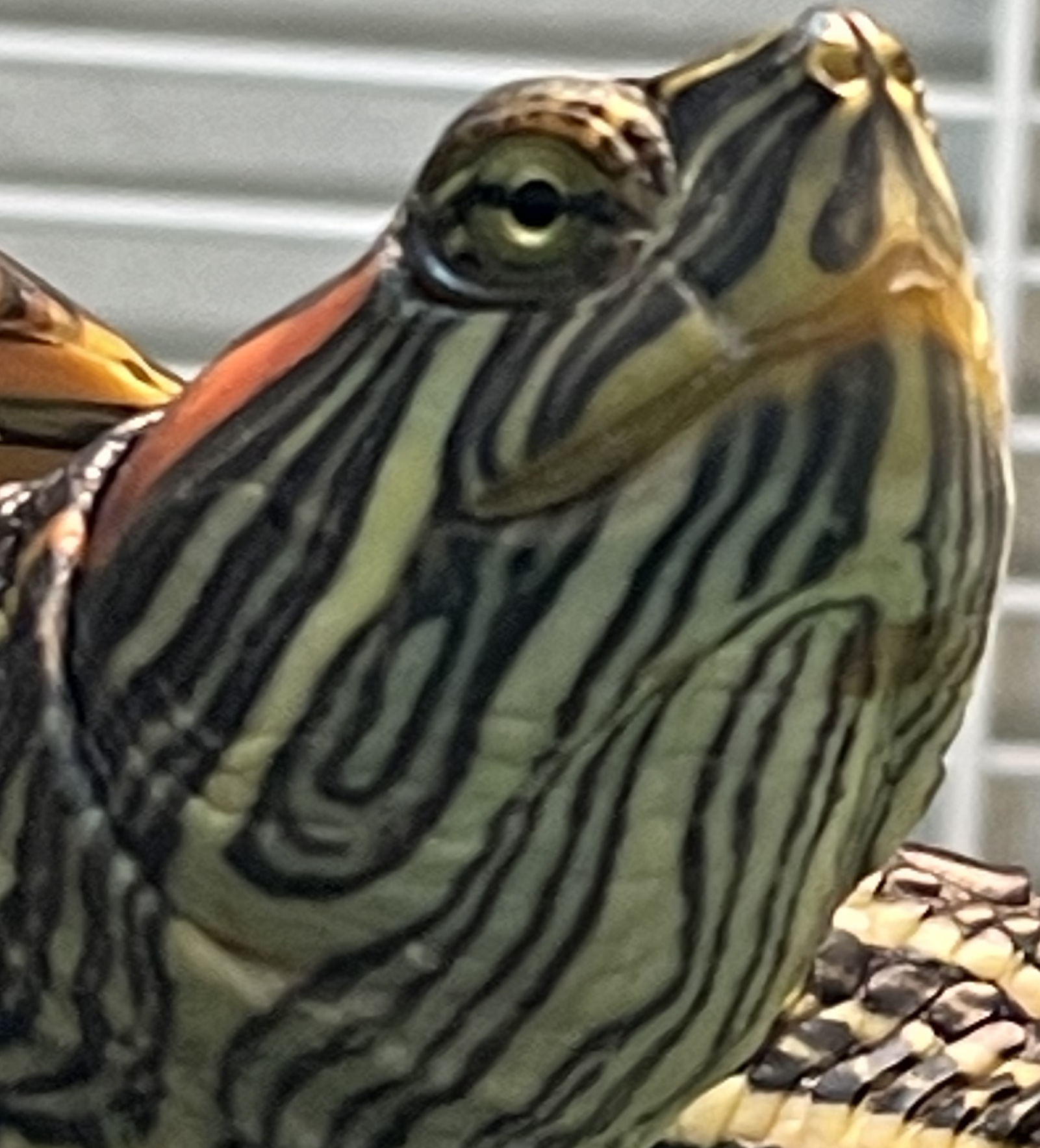 My RES has a pinkish spot on her chin (see photos). I could not remove it by rubbing it with my finger. She is otherwise healthy and behaving completely normally. Any idea what this is and what should be done? Thank you!
