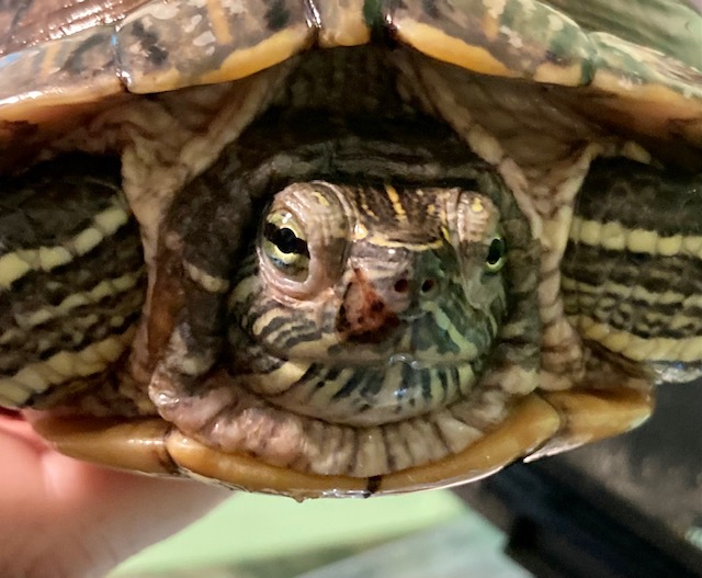 Hi, can anyone tell me what this red-brown blotch on my red ear slider's face is? It's been there for about 2-3 weeks.
