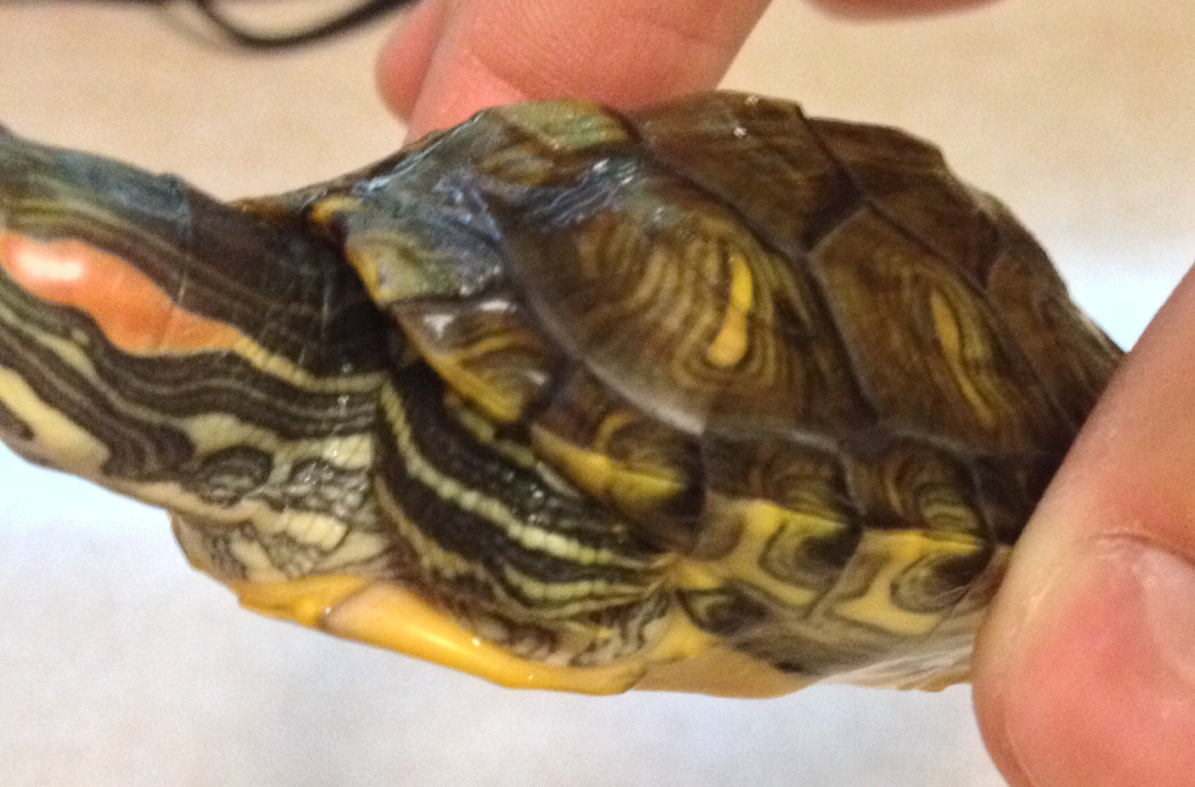 My turtle has slight pyramiding. I overfed him not knowing the right amount.