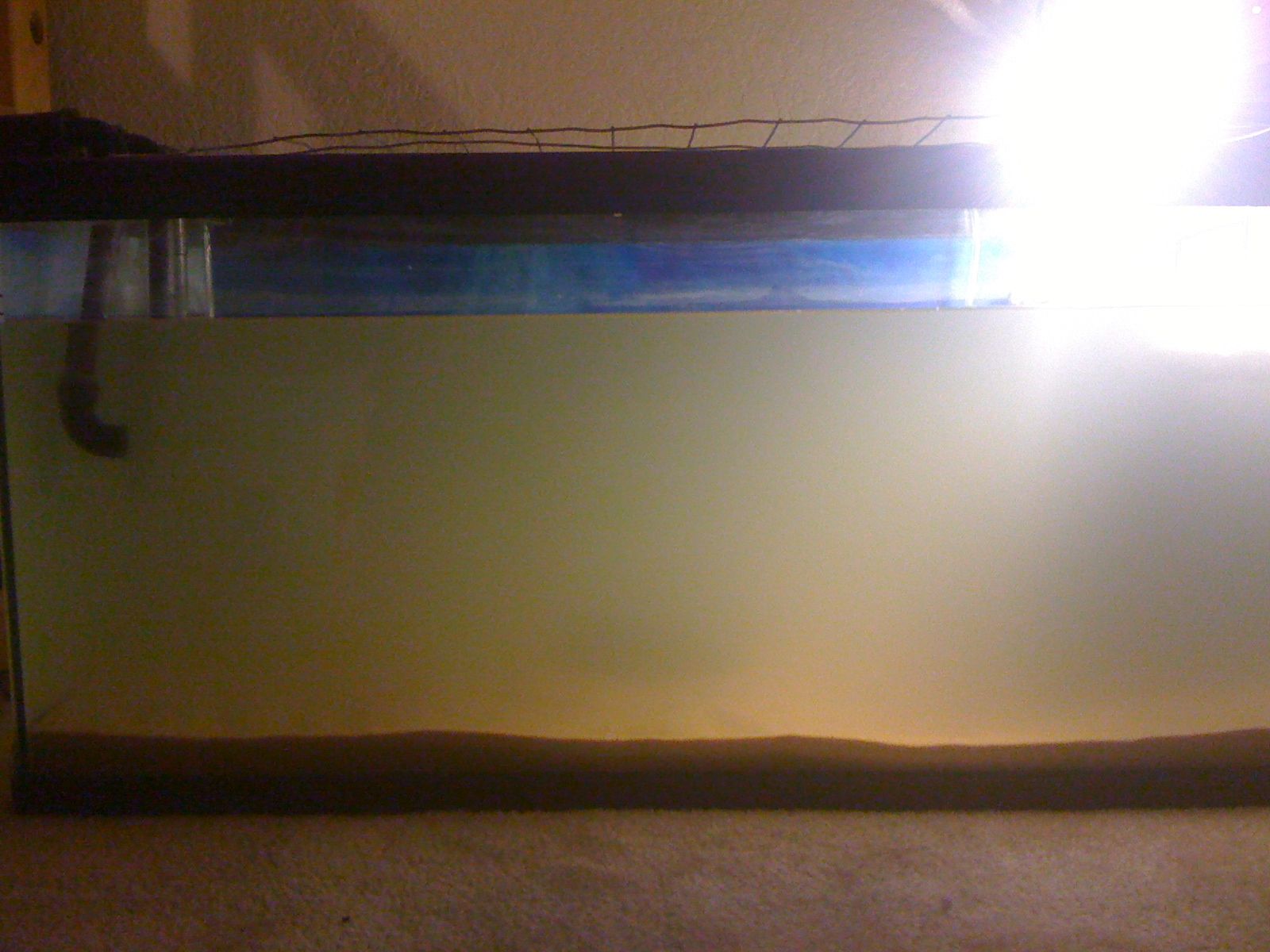 After a year having a bare bottom I got really bored and started to hate the way it looked. So I bought sand! I bought Quickcrete play sand 50LB bag at Lowes for only 4 bucks I cleaned it with a bucket and hose then scooped it out and put it in the aquarium which is a 40 gallon breeder. Then it got really cloudy to where I can only see a few inches into the tank :( Its been like that for about a hour? now. I can't really tell if its settling or not the driftwood in the center is a tiny bit more visible now. I have both the filters running since there is no large sand particles floating around. I was surprised to see that my Aquaclear 200 didn't make the sand stir up. I also put 20 drops of http://www.petco.com/product/105344/Aqu ... ifier.aspx