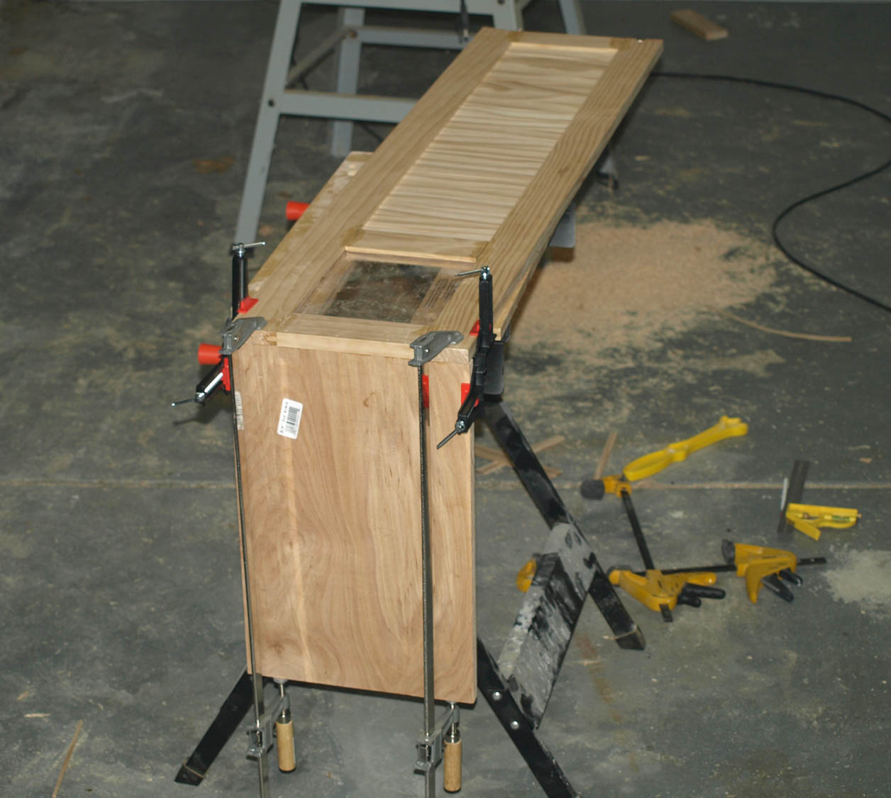 I wanted a hood for the tank, but I also wanted a window to view Moe on his basking platform. Looking through the ATBA pictures thread on this forum, I borrowed a few ideas and combined them. I wanted the front of the hood to have an acrylic window inlayed into the hood.