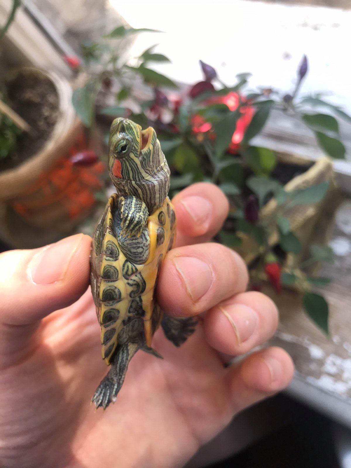 Hi, my Red ear slider is in a bad condition, he seems to have RI, but in my country there are no vets to go to, so i have been injecting him enrofloxacin 10% for the last 3 days but there have been no progress, he seems to get worse day after day. His neck seems a little puffed, he doesn't eat for already a week and constantly opens his mouth like he is choking or wants to spit out something. ill attach a photo of him. What should i do? should i force feed him? Please see the video also: https://streamable.com/g6qly9