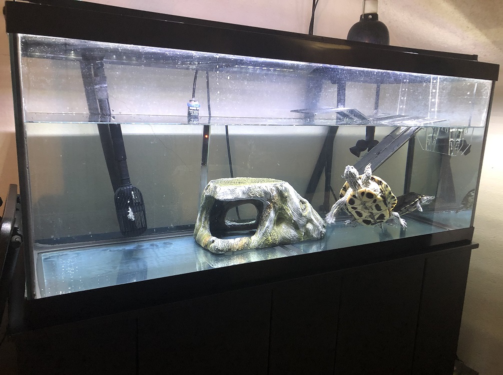 I figure it will depend on his growth. I know the bigger/dirtier he gets I’ll need a more powerful filtration system. I’ll keep him in it as long as it’s suitable. Not needing to tear the whole thing down monthly opens up a lot of options for making it look nice/fun for him. I currently have no substrate, as was recommended, but I see most people do use something. My uvb light also runs the length of the tank, they mentioned that it needed to be a 10.0 to penetrate the water to the bottom of the tank. Is that a thing? Or does he only soak it up while out of the water. Most setups I’ve seen have their lights just over the basking area.