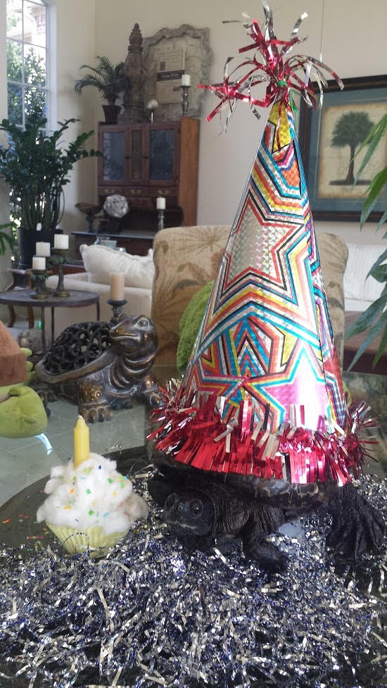 It was deafening in the house at dawn today. No turtle-powered wakeup call banging on the side of his bedroom aquarium to get us up and get him out.